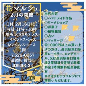 2月15日(土)こころと体の癒しのマルシェ「ホイホイオハナ」開催!