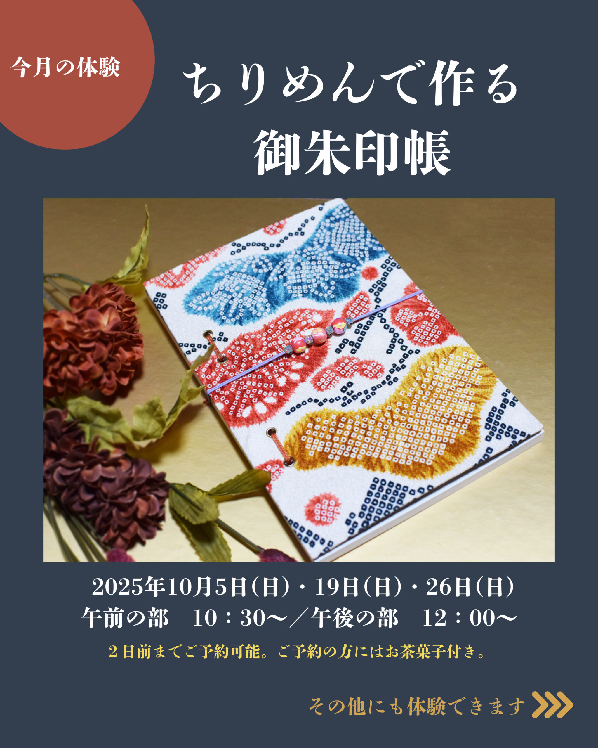 【10月の体験メニュー】「ちりめんで小物作り」(※事前予約制)