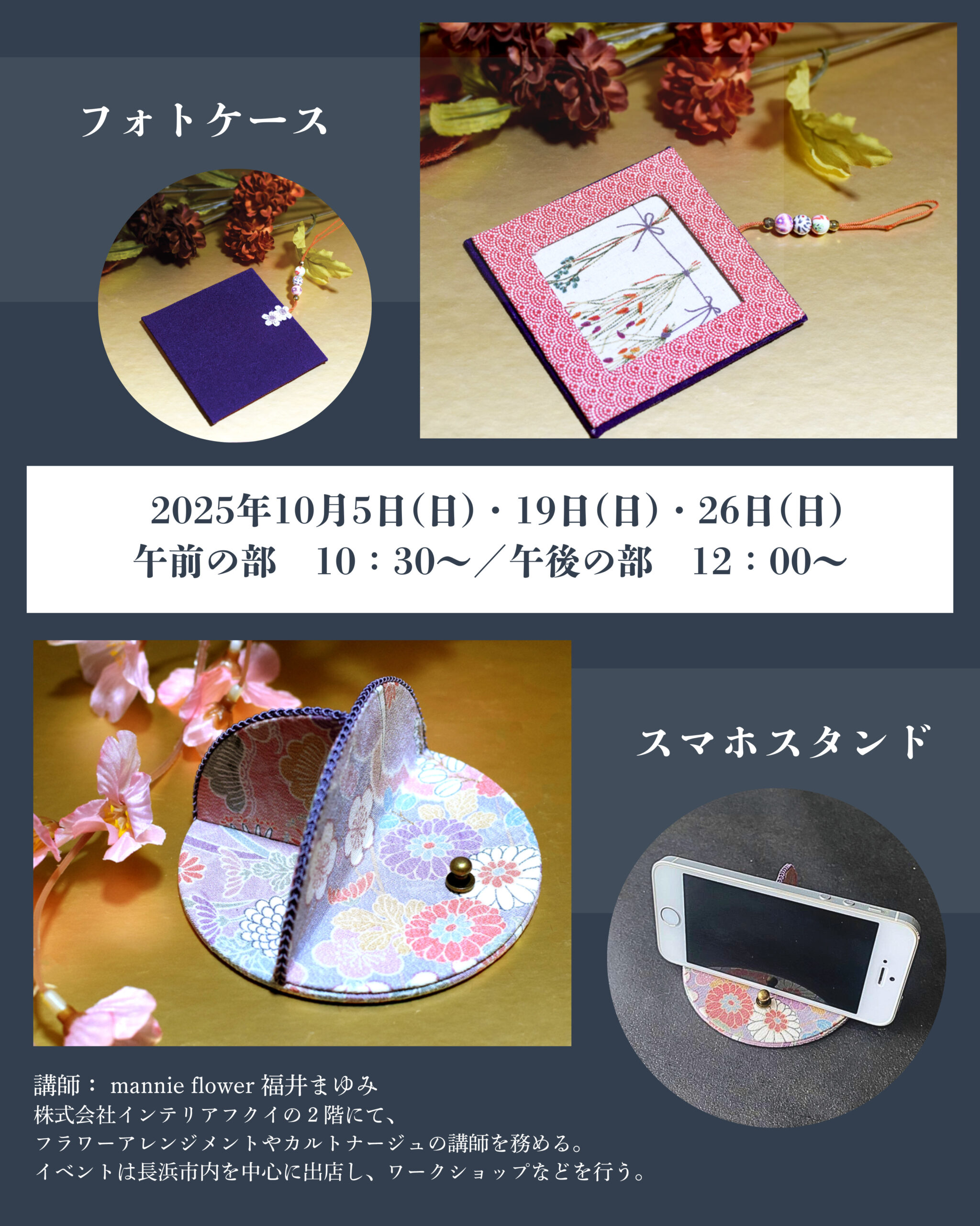 10月の体験メニューは 、福井まゆみさん(@mannie_flower)によるちりめんカルトナージュ作品作りです。