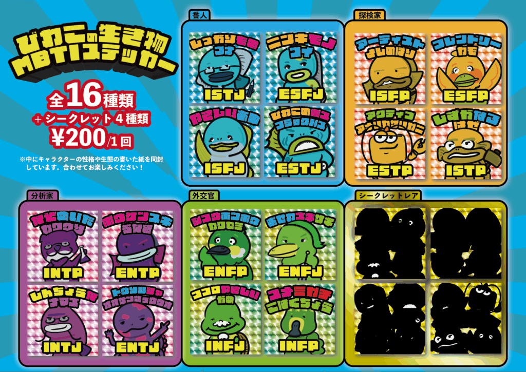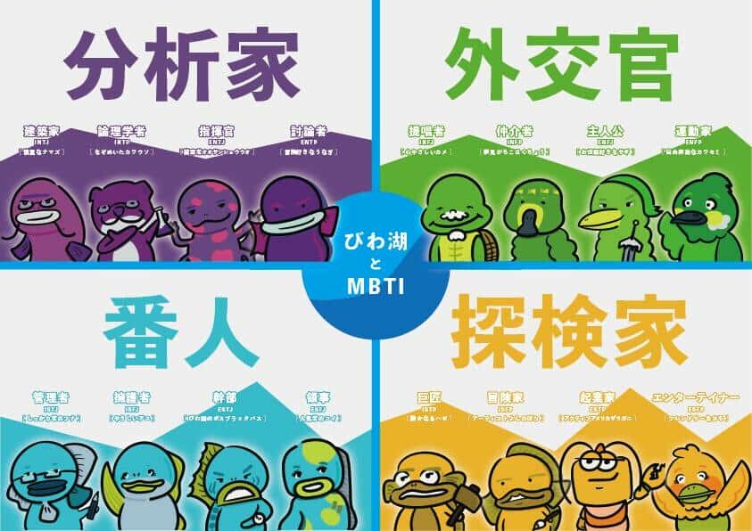 ・びわこの生き物MBTI×日常にいるヒト図鑑【AIパネル16種類】