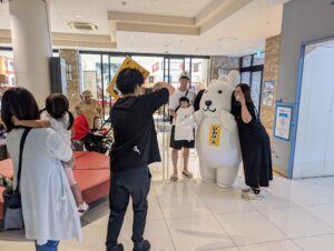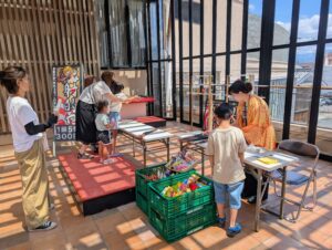 イベント当日、びわこの生き物MBTIステッカーのガチャを設置