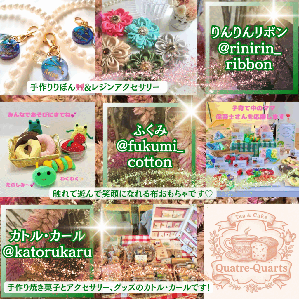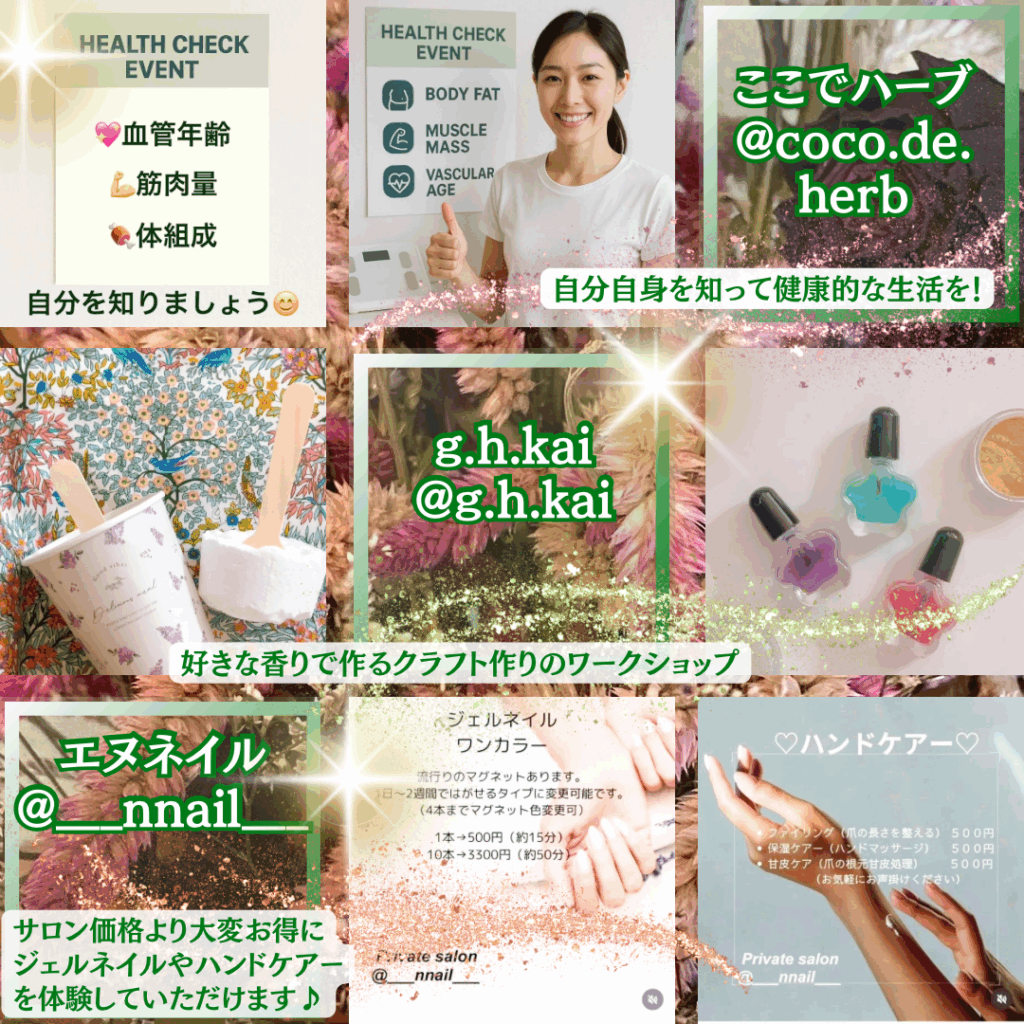 花マルシェは、自然素材を使ったハンドメイドやワークショップ、リラクゼーション、占い、焼き菓子など、多彩なお店が並ぶ、お子様から大人まで楽しめるマルシェです。