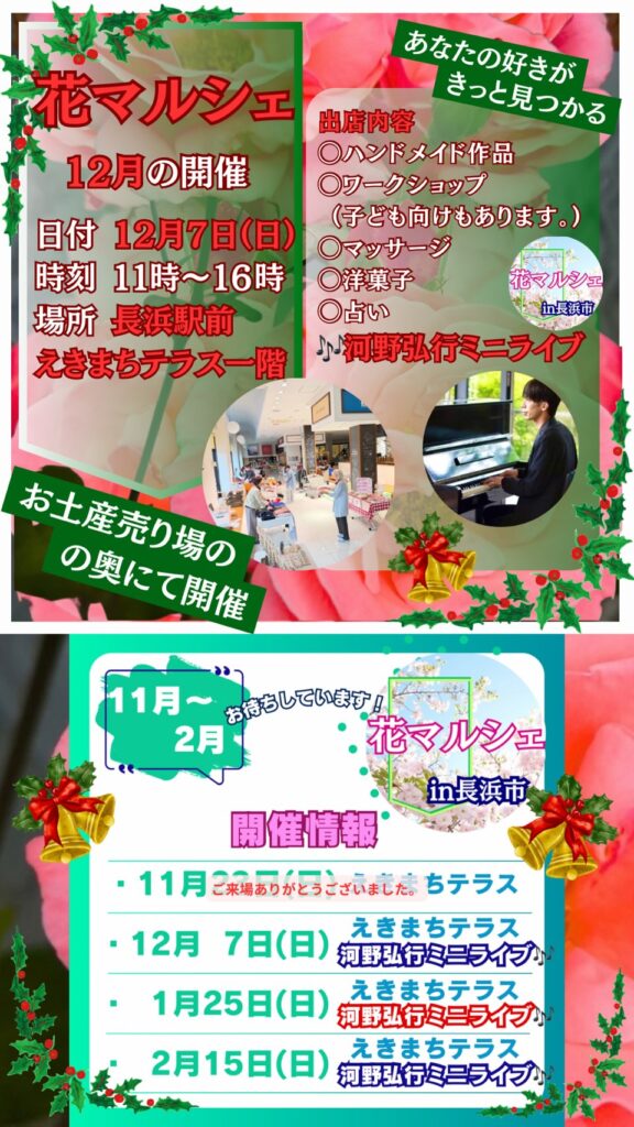 12/7(日) 11:00~16:00 Instagram:@hana.marche_in.nagahama |