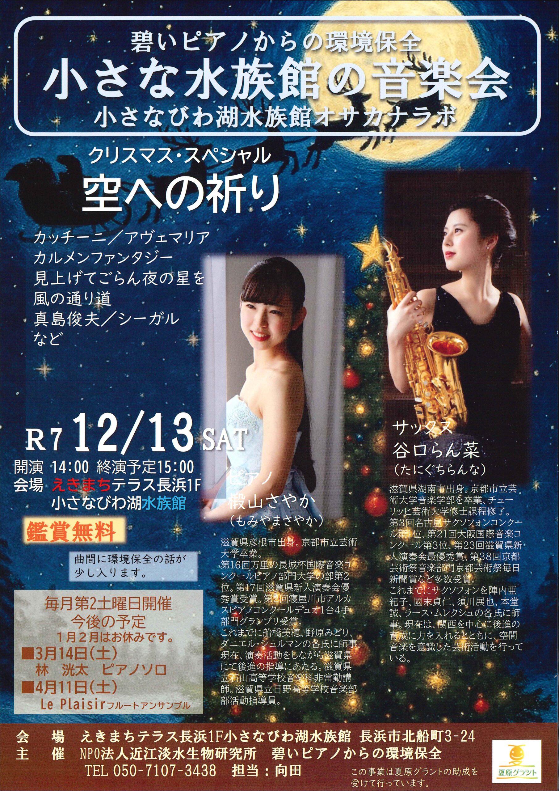 | 小さな水族館の音楽会 | 12/13(土) 14:00~15:00 Instagram:@nagahama_aquarium |