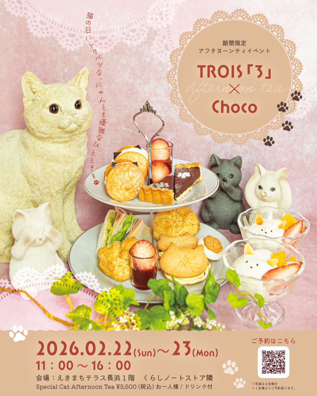 | TROIS「3」× クリエイターズコラボアフタヌーンティ | 2/22(日)・23(月祝) 11:00~16:00 ホームページ:2月22日(日)・23日(月祝)「TROIS「3」×クリエイターズコラボアフタヌーンティー」開催!(※要事前予約) 主催者ホームページ:TROIS「3」×クリエイターズコラボアフタヌーンティー Instagram:@event_morphe |