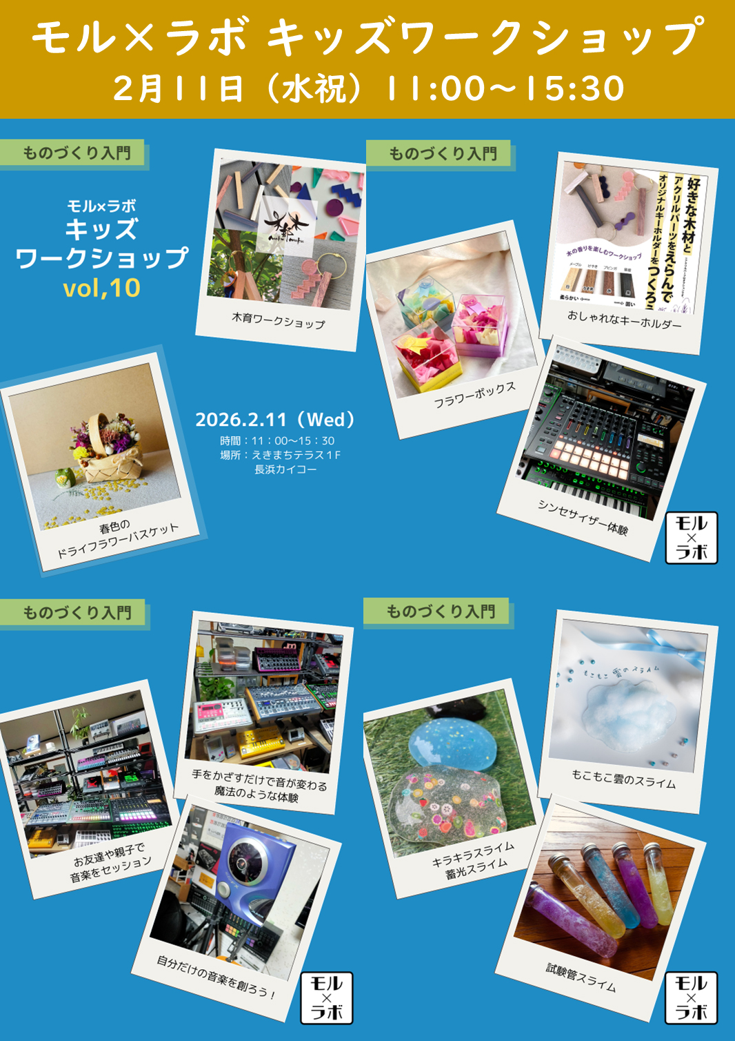 | [モル×ラボ]キッズワークショップ | 2/11(水祝) 11:00~15:30 ホームページ:2月11日(水祝)「【モル×ラボ】キッズワークショップvol.10」開催! Instagram:@event_morphe |