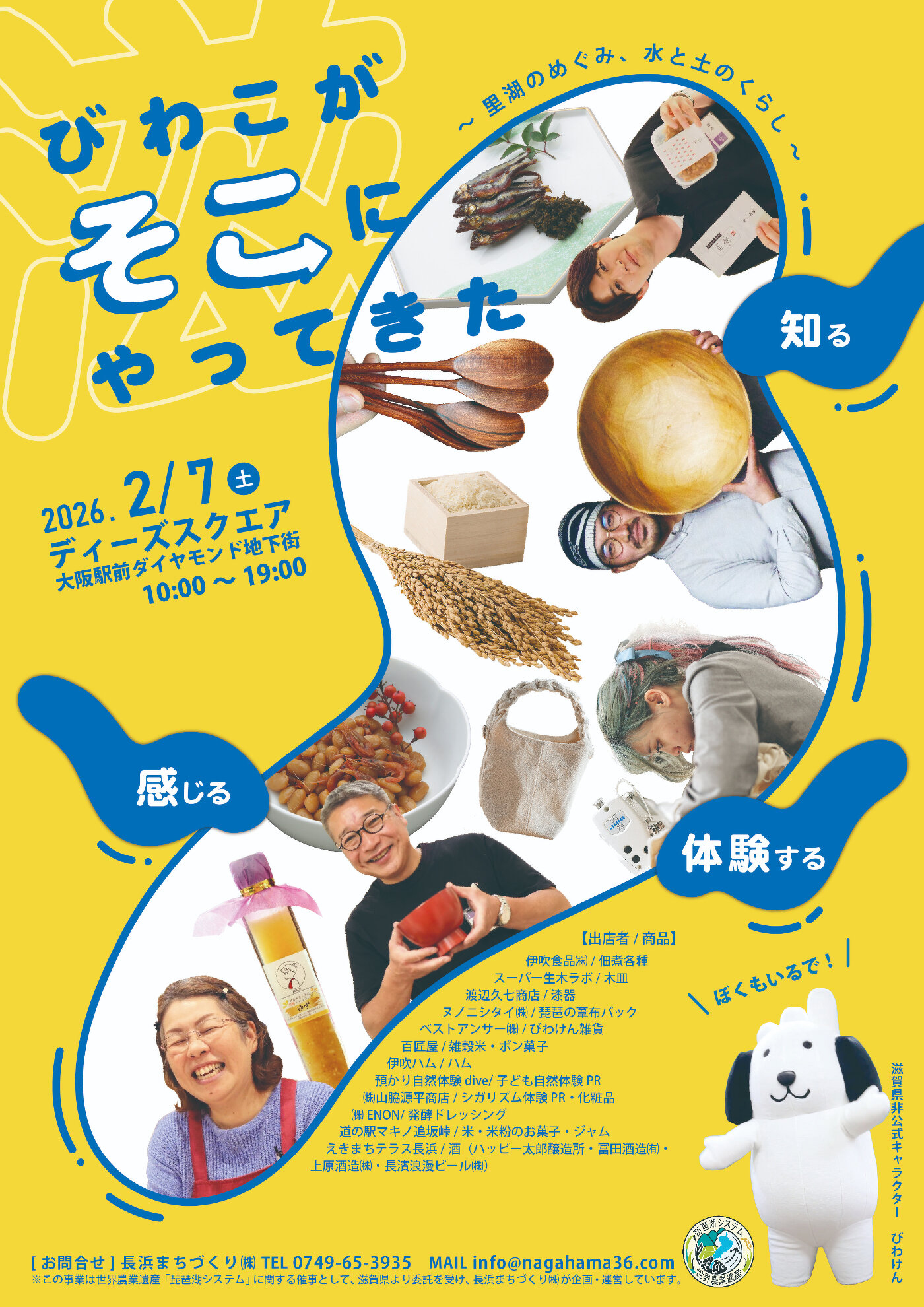 2月7日(土)、大阪市で開催される「びわこがそこにやってきた 〜里湖のめぐみ、水と土のくらし〜」に、えきまち長浜株式会社(えきまちテラス長浜くらしノートストア)が出店します!