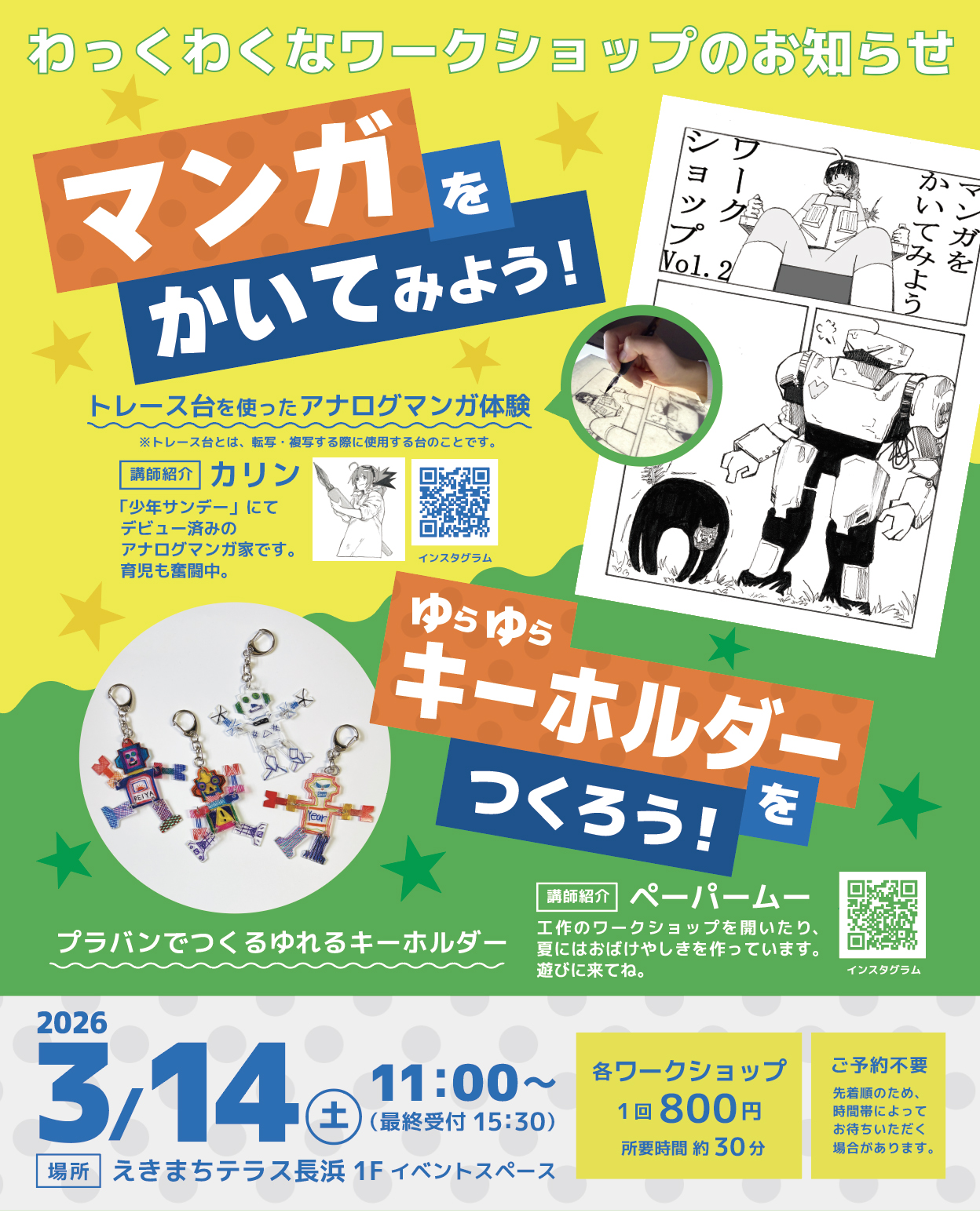 3月14日(土) アナログマンガ体験とプラバンキーホルダーづくり開催!