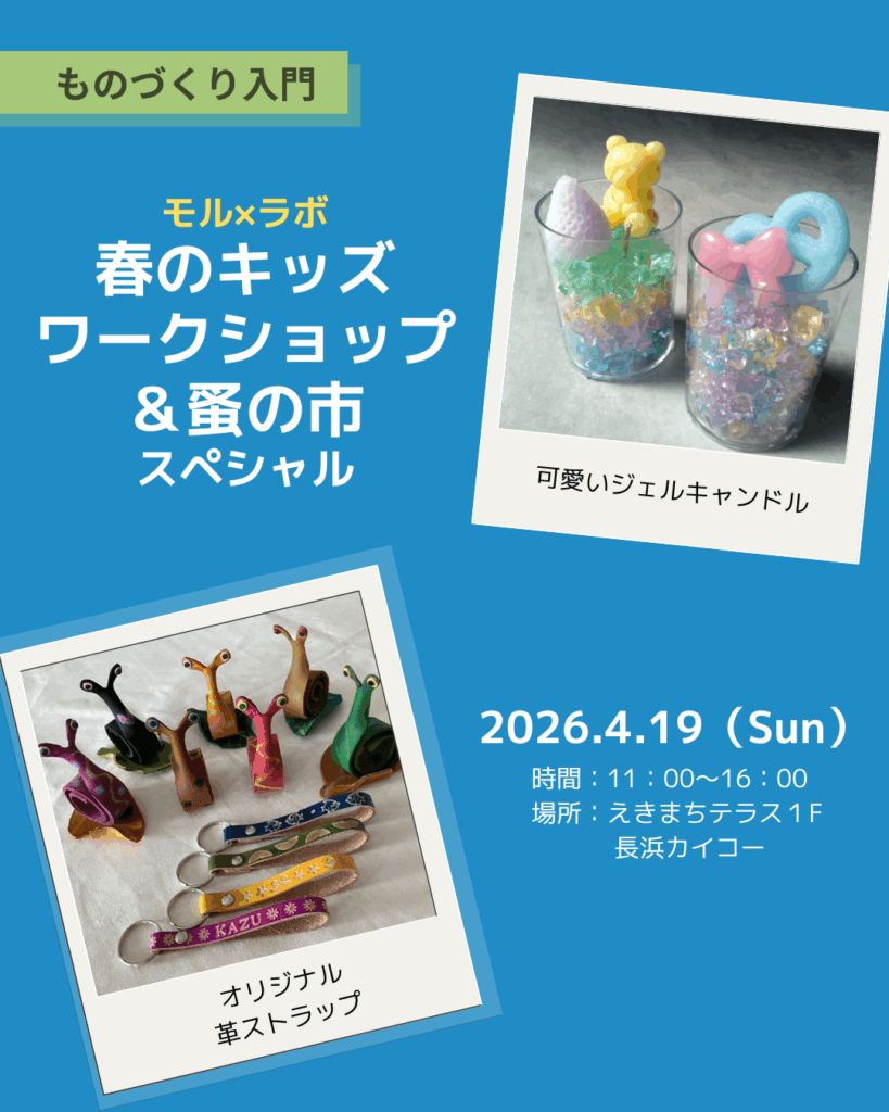 ハンドメイドやものづくりを活性化していくことで、長浜のまちの魅力向上と新たな賑わい創出を目指すアトリエモルフェとえきまち長浜の共同企画です。